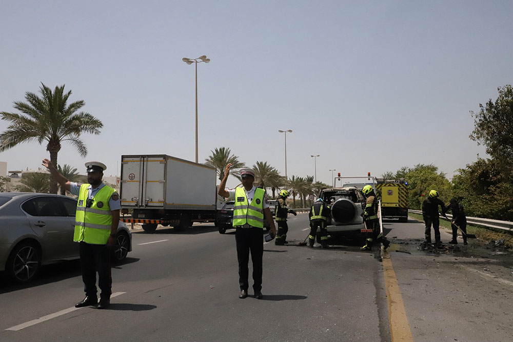 "الدفاع المدني": إصابة بسيطة لسيدة احترقت مركبتها إثر حادث مروري